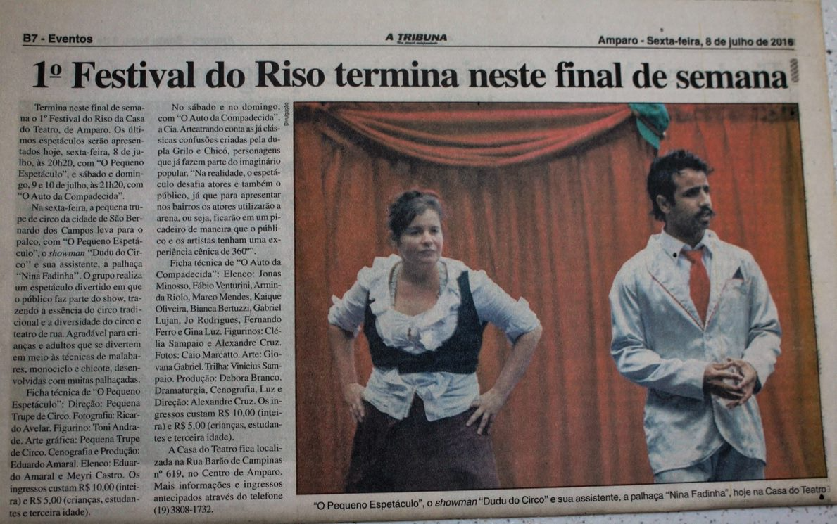 Jornal Impresso “ A TRIBUNA” 08/07/2016 “1º Festival do Riso termina nesse final de semana”