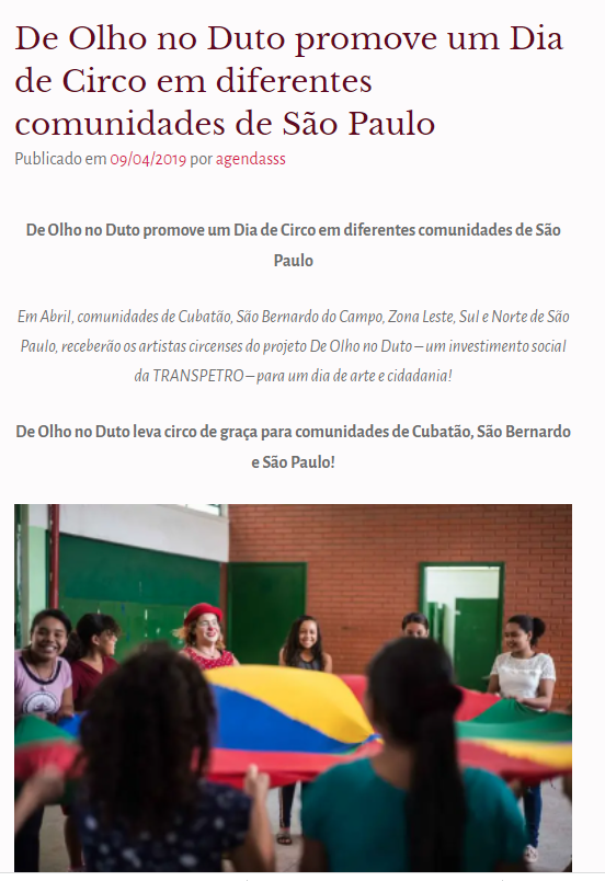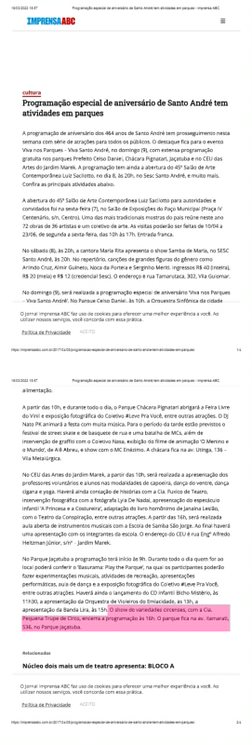 Matéria no “Imprensa ABC” 08/04/2017 Programação especial de aniversário de Santo André tem atividades em parques (Pequena Trupe)