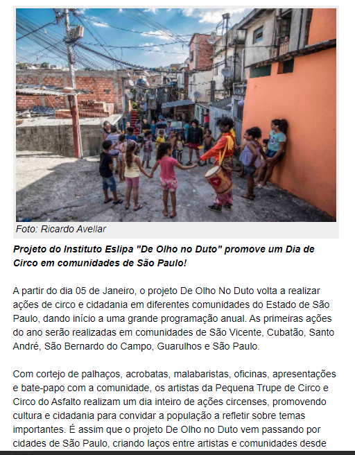 Rede TVT (Youtube) "Projeto leva cultura e palhaçaria a comunidades "